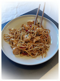 Ajouter les nids de pâtes égoutté , les blancs de poulets et mélanger.