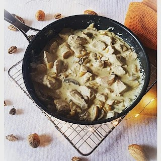 Remettre les morceaux de poulets laisser réduire la sauce puis ajouter la crème fraîche liquide.