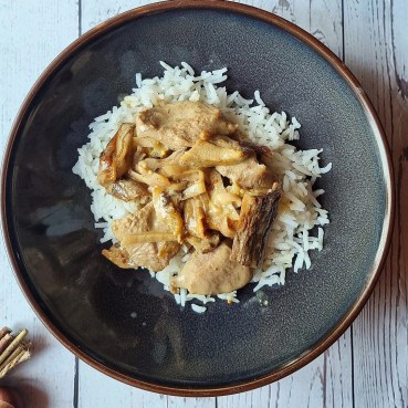 Rajouter les blancs de poulets et laisser mijoter à feu doux jusqu’à ce que la sauce réduise un peu.