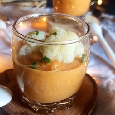 Disposez la préparation dans des verrines et incorporez un bouquet de chou-fleur dans chaque verrine.