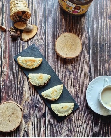 Ajoutez les ingrédients au centre du disque de pâte ensuite pliez-les en deux et soudez les bords.