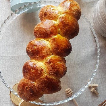 Disposer la brioche sur une feuille de papier cuisson sur une plaque.